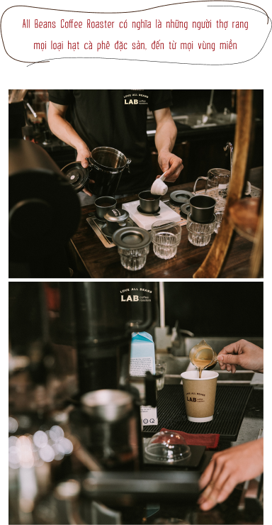 All Beans Coffee thì có vẻ lạ lẫm, nhưng hỏi “Uống cà phê LAB bao giờ chưa?” thì chắc hẳn nhiều người sành cà phê sẽ gật đầu. LAB Coffee là tên gọi cũ của All Beans Coffee - một thương hiệu cà phê rang mộc nổi bật tại Hà Thành. Khi được hỏi lý do vì sao đổi tên trong lúc thương hiệu này đang dần phổ biến, anh Hà chia sẻ rằng: Việc đổi tên thương hiệu là cách để All Beans Coffee đưa cà phê đặc sản vùng miền tiệm cận và gần gũi với khách hàng hơn!