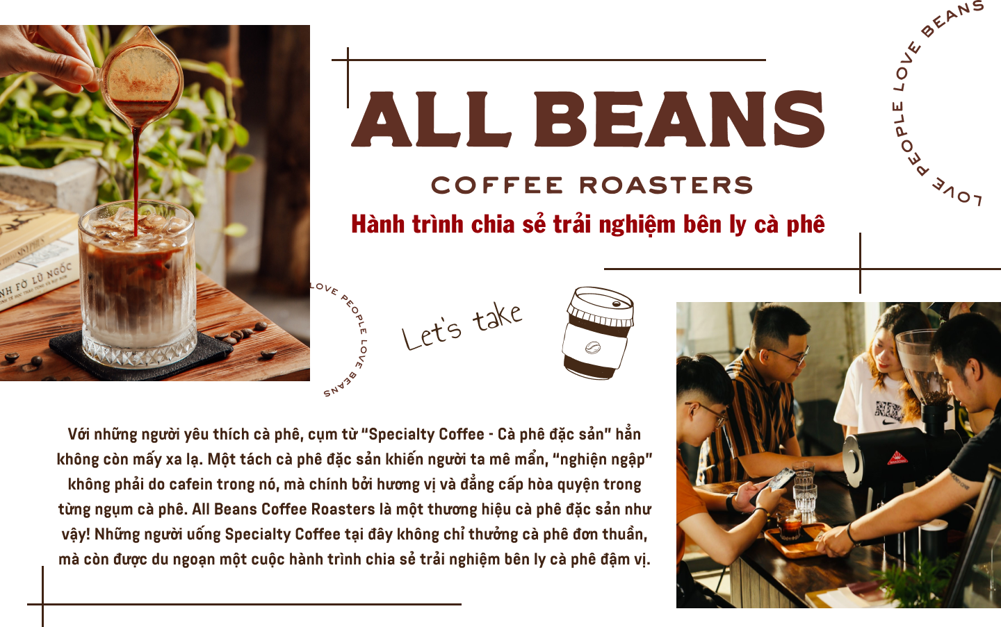 Phải nhấn mạnh thêm lần nữa là, All Beans Coffee chỉ sử dụng cà phê đặc sản để chế biến menu đồ uống của mình. Hạt cà phê được tỉ mỉ nghiên cứu, điều chỉnh các mức thời gian, nhiệt độ, mức gió khi rang để mang lại những mẻ cà đậm đà, cuốn hút. Từ cà phê đặc sản Ethiopia, Panama, Kenya, Costa Rica,... đến Việt Nam xinh đẹp, tất cả đều được những người thợ rang, xay, chế biến sao cho “nổi bật” hương vị đặc trưng nguyên bản. Thức uống cũng từ đó mà trở nên đặc biệt hơn rất nhiều.