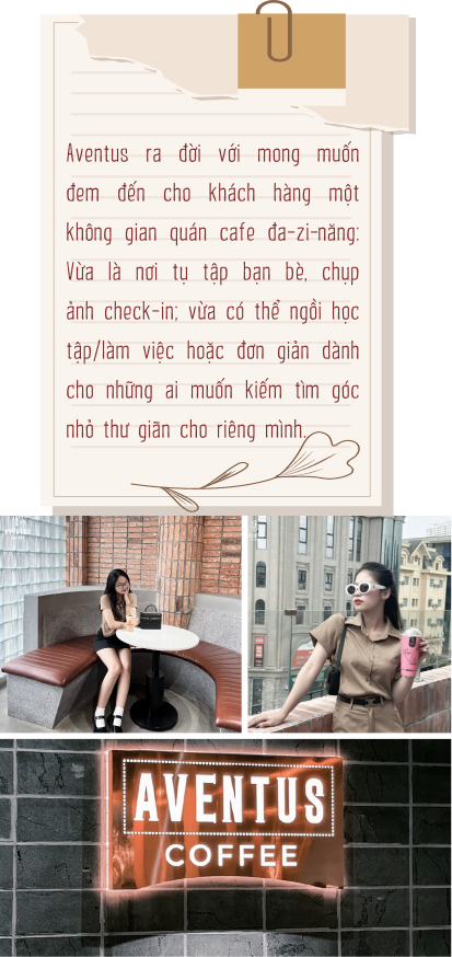 Sở hữu nhiều lợi điểm, không có gì quá ngạc nhiên khi Aventus Coffee nhanh chóng trở thành “tọa độ” check-in được yêu thích. Tuy nhiên, Aventus ra đời với nhiều kỳ vọng hơn thế. Các nhà sáng lập mong muốn đem đến cho khách hàng một không gian quán cafe đa-zi-năng, đáp ứng đa dạng nhu cầu: Vừa để tụ tập bạn bè uống cafe, chụp ảnh check-in; vừa có thể là nơi ngồi học tập/làm việc; hoặc đơn giản dành cho những ai muốn tìm kiếm góc riêng tư để thư giãn, tận hưởng cuối tuần.