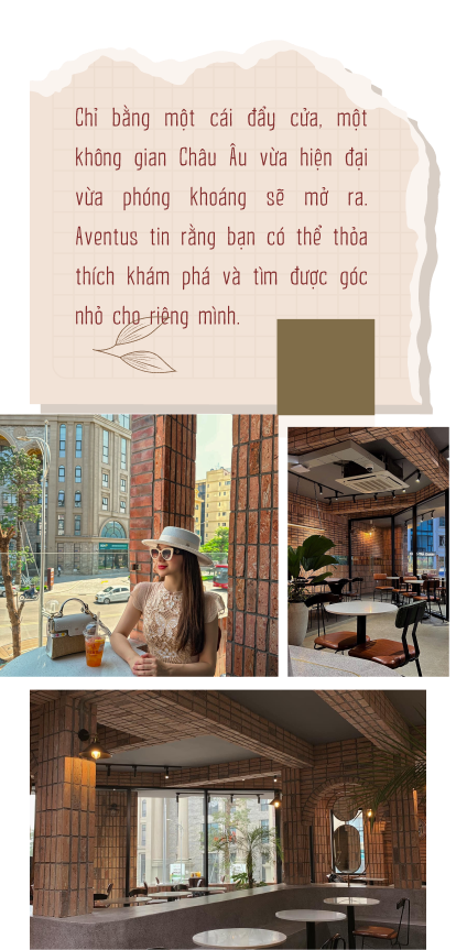 Khoác lên mình nét đẹp Châu Âu hiện đại mà phóng khoáng, Aventus thu hút mọi ánh nhìn với những bức tường gạch đỏ để mộc và cửa kính lớn chia ô. Nhờ vậy, cư dân mạng truyền tai nhau câu nói: “Tại Aventus, chỉ cần giơ máy lên là có hình đẹp”.