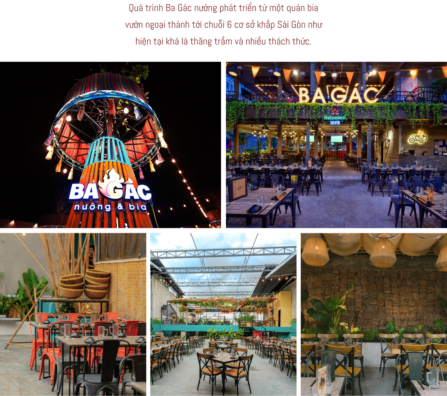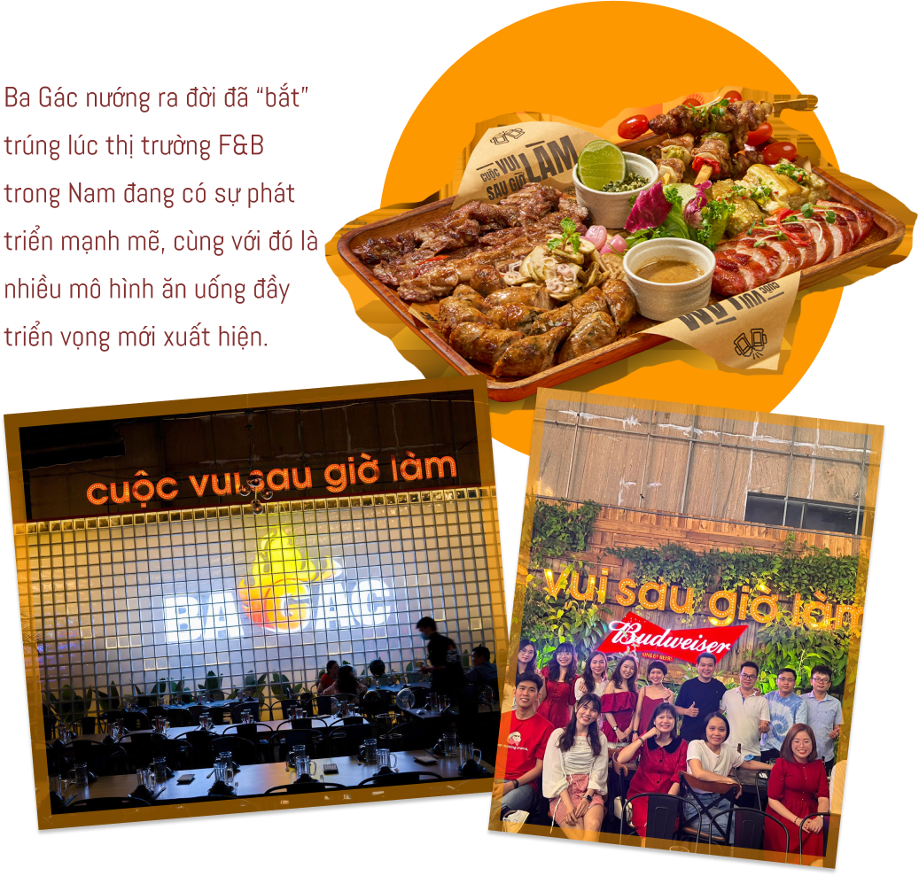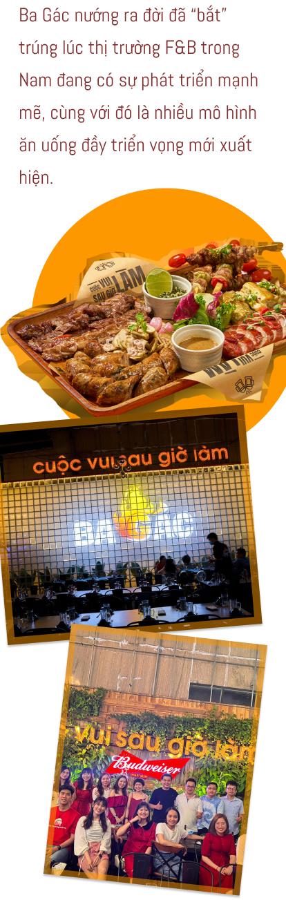 Giai đoạn đó thị trường F&B trong Nam đang đi lên mạnh mẽ, các khu vực ngoại thành như Hóc Môn ngày càng phát triển hơn. Trùng hợp hơn nữa là mô hình bia vườn (bia garden) cũng vừa chớm nở, mới có vài người thử; nhưng cá nhân anh thấy nó đơn giản, dễ làm và sẽ có triển vọng hút khách rất lớn trong tương lai. Vậy nên sau khi bàn bạc nghiên cứu kỹ lưỡng, anh quyết định chọn mô hình này và mở quán Ba Gác nướng đầu tiên ở Hóc Môn.