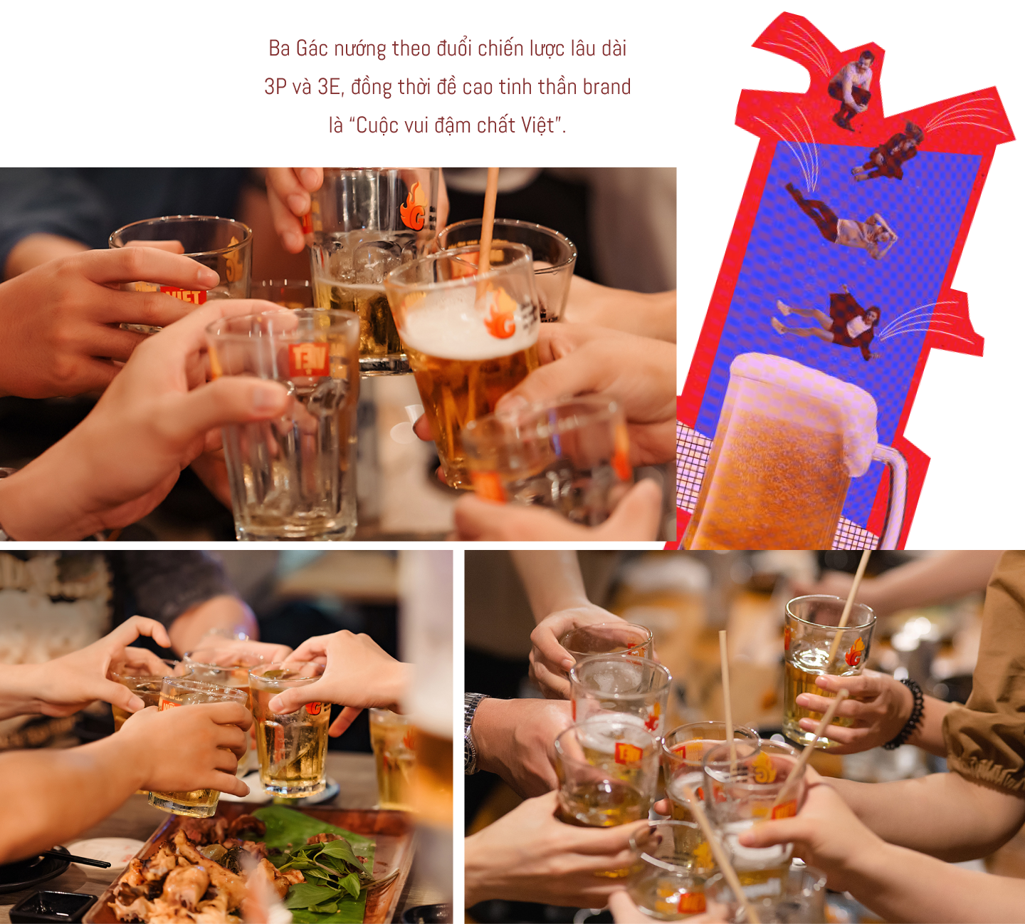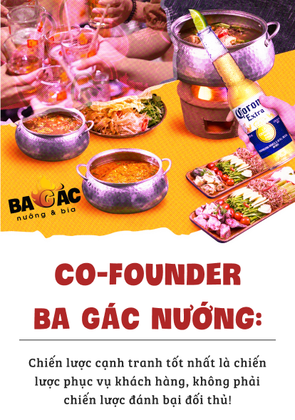 Chữ P tiếp theo là Product. Menu của Ba Gác nướng hiện nay khá là ổn - theo đánh giá khách quan của một người hay đi nhậu là anh (cười). Ở mỗi cơ sở, menu sẽ có sự matching nhất định với concept của cơ sở đó, làm sao để ra được cái “đậm chất Việt” rõ nét nhất. Chữ P cuối cùng là Performance, liên quan đến những yếu tố khác tạo thành trải nghiệm cho khách hàng ngoài đồ ăn. Mỗi cơ sở đều phải lưu ý khi lựa chọn âm nhạc, trò chơi, event,... làm sao mà vừa tạo được cái “mood” vui vẻ thoải mái cho khách, vừa đảm bảo vẫn đi theo tiêu chí “đậm chất Việt” của thương hiệu.