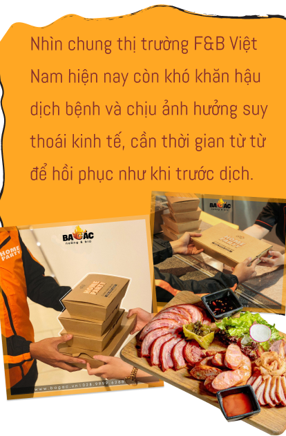 Ngược lại, Ba Gác nướng theo mô hình lớn hơn, cần mặt bằng rộng; cái mà thương hiệu bán cho khách không chỉ là đồ ăn mà còn là sự hài lòng, vui vẻ khi được tới quán ngồi lai rai vài chai bia vài món nhắm với bạn bè, đồng nghiệp. Dịch dã làm ảnh hưởng khá nhiều tới hoạt động của Ba Gác nướng, bọn anh không thể hoàn toàn chuyển đổi sang bán hàng online được mà chỉ có thể coi nó như một phương án duy trì trong dịch mà thôi, ví dụ như bán đồ ăn trưa online để giúp anh em trong công ty có thêm thu nhập,...