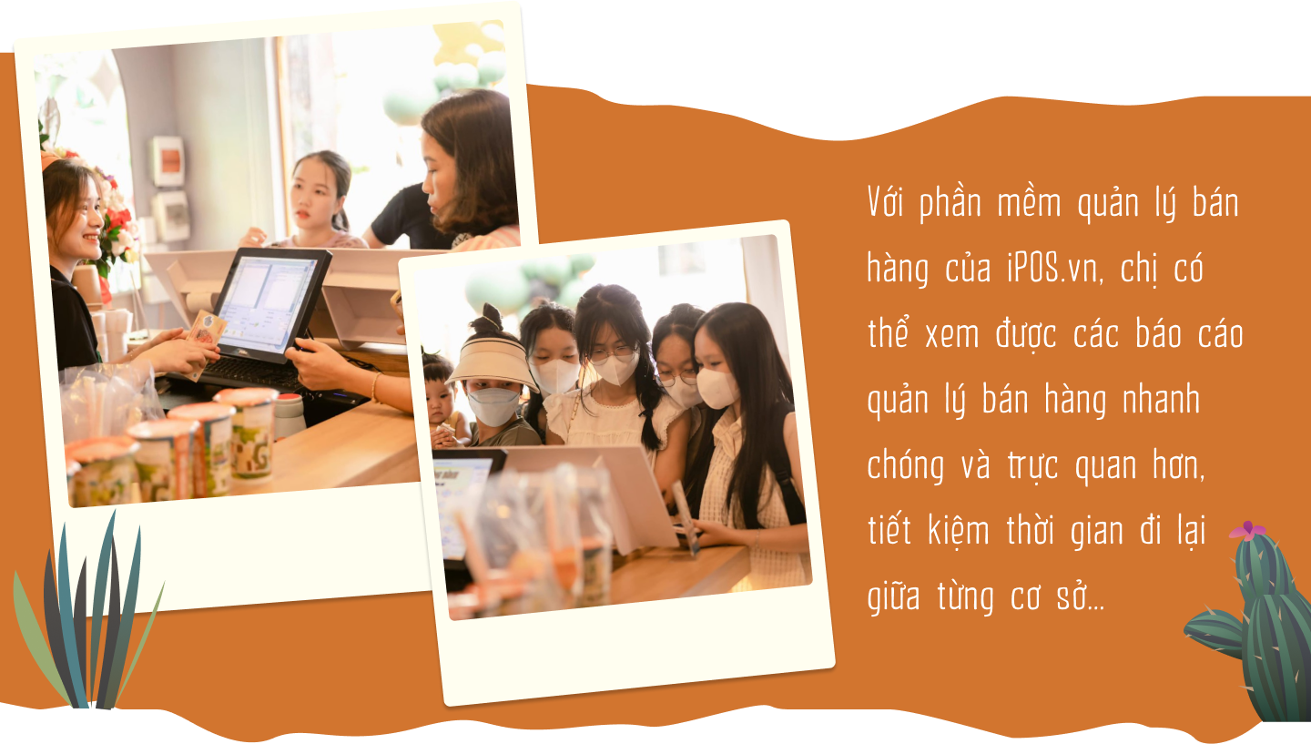 Với phần mềm quản lý bán hàng của iPOS.vn, chị có thể xem được các báo cáo quản lý bán hàng nhanh chóng và trực quan hơn, tiết kiệm thời gian đi lại giữa từng cơ sở. Đồng thời, đối với các bạn nhân viên thu ngân/phục vụ, phần mềm giúp quá trình order và thanh toán cho khách nhanh chóng, chính xác hơn.