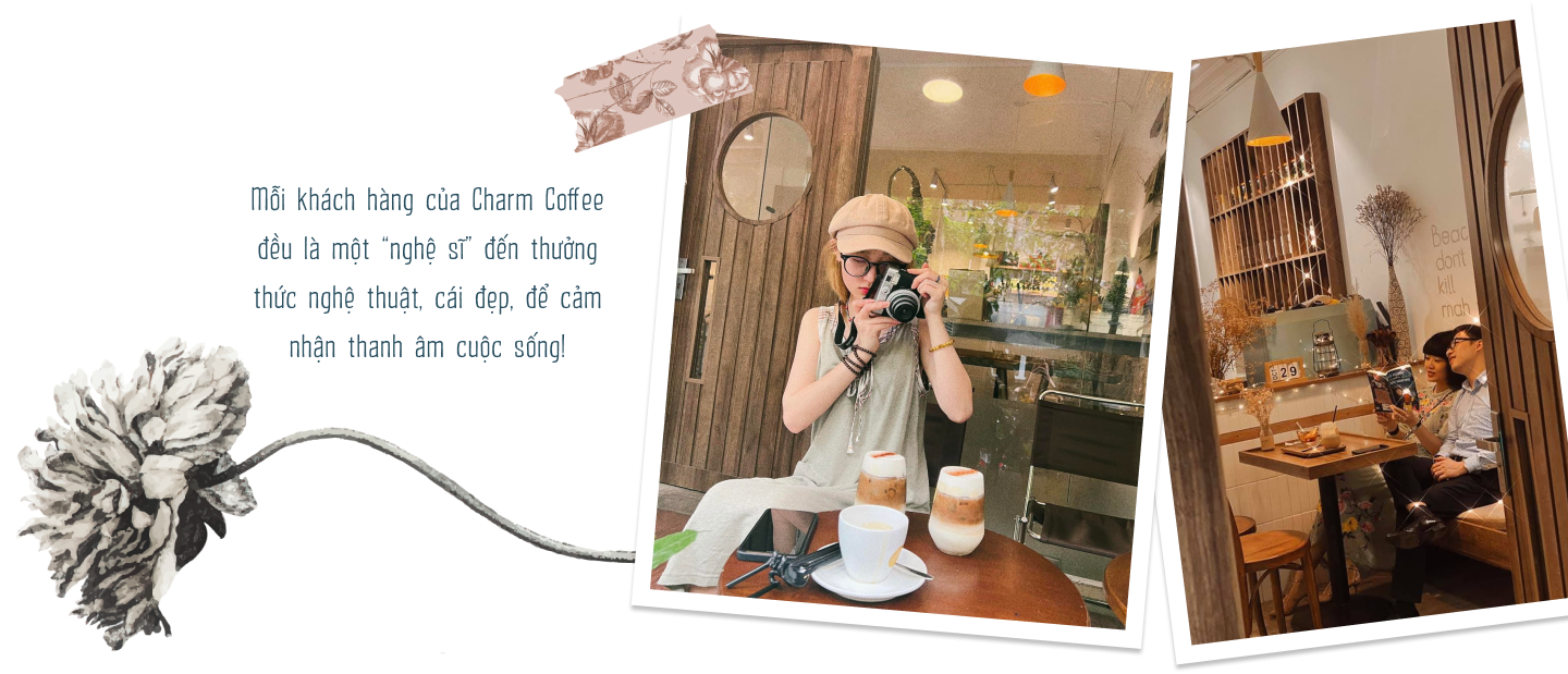 Được biết khi đến Charm Coffee, khách hàng sẽ được trải nghiệm không gian rất nghệ thuật, được chị chăm chút tỉ mỉ, “mê hoặc” lòng người như ý nghĩa của tên quán. Chị có thể chia sẻ thêm về mong muốn của mình khi hướng tới phong cách này?