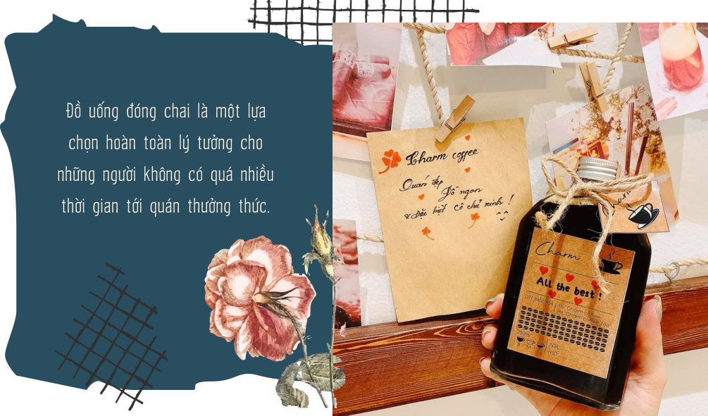 Nhưng cũng phải thông cảm với nhiều khách hàng, họ không phải là người có thời gian tới tận nơi thưởng thức nên đồ uống đóng chai đôi khi là một lựa chọn hoàn toàn lý tưởng với họ. Thấu hiểu và tận tâm với khách hàng, giúp họ không cần có mặt trực tiếp tại quán vẫn có thể được cầm trên tay những món đồ uống yêu thích, đó là lý do tại sao chị vẫn chọn một số món thức uống của Charm Coffee để đóng chai, chẳng hạn như cà phê, hay trà,...