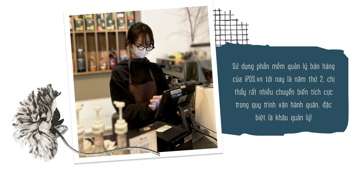 Chị sử dụng phần mềm quản lý bán hàng của iPOS.vn tới nay đã bước sang năm thứ 2 rồi. Từ khi sử dụng, chị đã thấy nhiều chuyển biến rất tích cực trong quy trình vận hành quán, đặc biệt là khâu quản lý. Áp dụng công nghệ giúp nhân viên của Charm Coffee giảm tải áp lực phải ghi nhớ nhiều thông tin, tối giản các công đoạn không cần thiết để chuyên tâm phục vụ khách hàng tốt hơn.