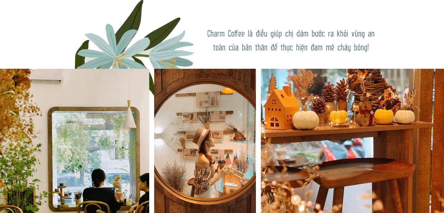 Nhiều người chọn mở quán để kinh doanh, số khác thì muốn thỏa mãn niềm vui thú của bản thân. Còn với chị thì sao, điều gì đã thôi thúc chị cho ra đời Charm Coffee?