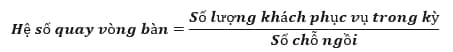 Hệ số quay vòng bàn là số lần bàn được dọn để phục vụ cho 1 khách hàng mới trong một khoảng thời gian nhất định. Hệ số quay vòng bàn càng lớn thì càng phục vụ được nhiều khách hàng hơn từ đó doanh thu cũng sẽ tăng lên.