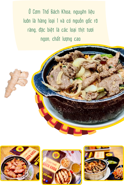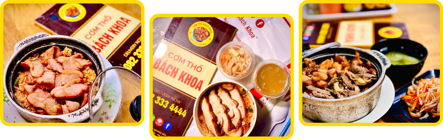 Ngoài việc đảm bảo chất lượng thì chúng tôi còn ưu tiên đồng bộ nhận diện thương hiệu cho các đơn hàng online, tạo ra sự chỉn chu để khi khách hàng nhận đơn sẽ cảm nhận được cái tâm và chữ tín của thương hiệu. Chúng tôi tự tin chất lượng của Cơm Thố Bách Khoa luôn ổn định.