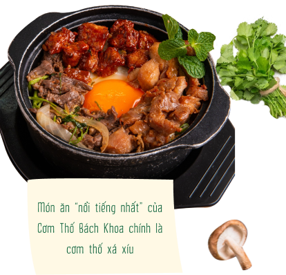 Điều khác biệt mà mọi người luôn nói đến khi nhắc về Cơm Thố Bách Khoa chính là sự chỉn chu trong từng thố cơm nóng hổi cho đến món dưa muối và nước canh ăn kèm. Chúng tôi có thể khẳng định thương hiệu Cơm Thố Bách Khoa quan tâm nhiều đến chất lượng của món ăn chứ không buôn bán chạy theo số lượng. “Hòa nhập nhưng không hòa tan”, từ ngày mở quán cho đến nay, Cơm Thố Bách Khoa vẫn giữ được hương vị đặc trưng khác biệt trong từng thố cơm của thương hiệu. Đó cũng chính là bí quyết giúp Cơm Thố Bách Khoa chinh phục được khẩu vị khó tính của những người sành ăn đất Hà thành.