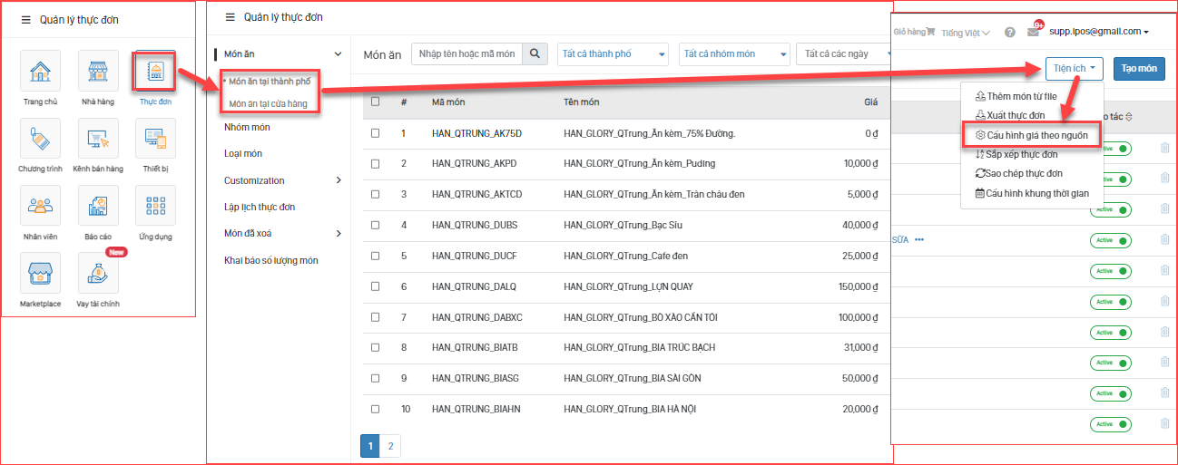 Cách 2: Sử dụng tính năng Cấu hình giá theo nguồn để thay đổi nhanh VAT món ăn