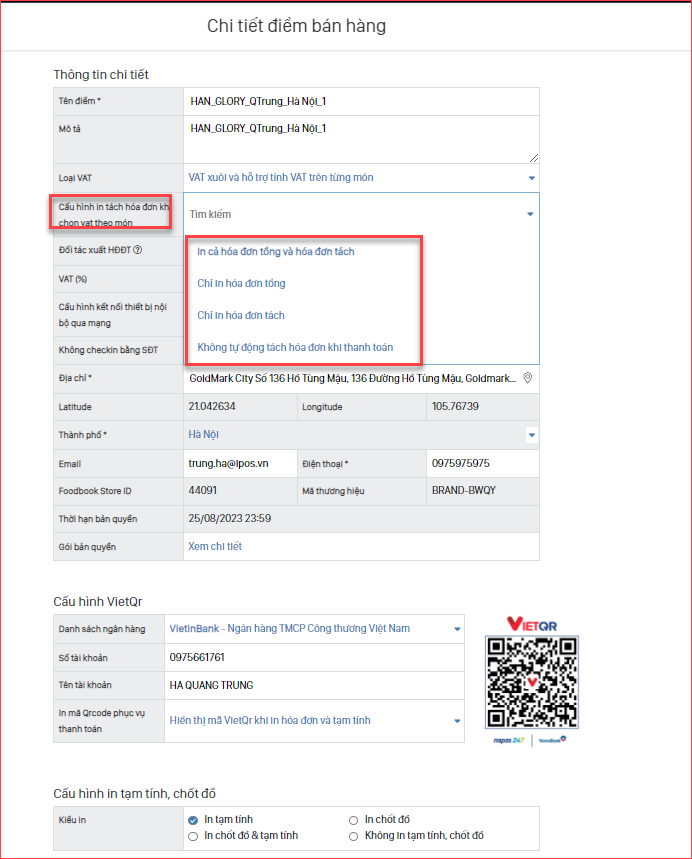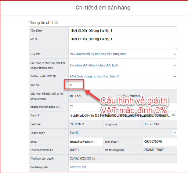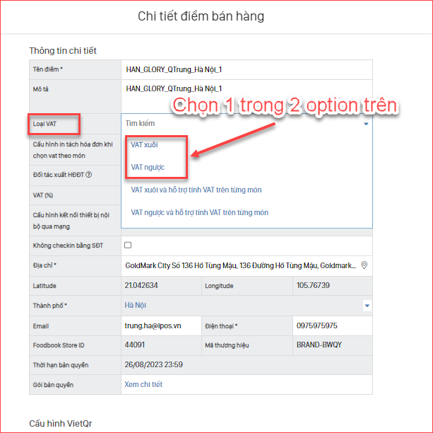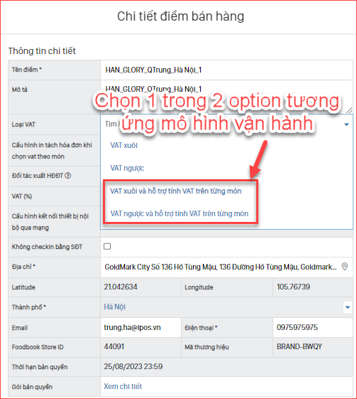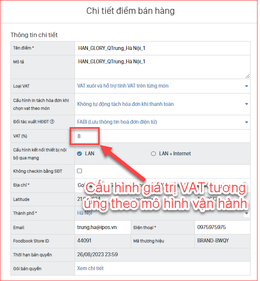 Cấu hình lại giá trị VAT tương ứng theo mô hình vận hành tại cửa hàng
