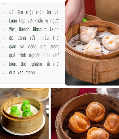 Vậy làm thế nào để anh và Haochi Dimsum Taipei dung hòa được sự khác biệt ấy cho hợp khẩu vị người Việt, đồng thời vẫn giữ được những nét đặc trưng của ẩm thực xứ Đài?