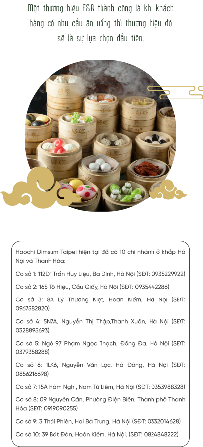 Trong một ngành dịch vụ nặng tính cạnh tranh như ngành F&B, nếu thương hiệu muốn tồn tại lâu dài thì phải giữ được sự kết nối với khách hàng, làm sao để khi khách hàng có nhu cầu ăn uống thì mình là cái tên đầu tiên họ nghĩ đến, như thế là đã thành công rồi. Cho đến thời điểm hiện tại, mình mong rằng sau khi đã dùng bữa ở Haochi, mỗi vị khách bước ra khỏi nhà hàng xong đều có thể vui vẻ nhận xét là: “Ăn ngon quá!”. Đó vừa là kỳ vọng, vừa là mục tiêu và cũng là thành công lớn nhất mà Haochi Dimsum Taipei đang hướng tới!