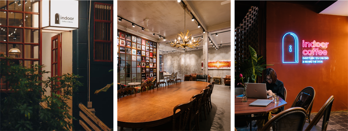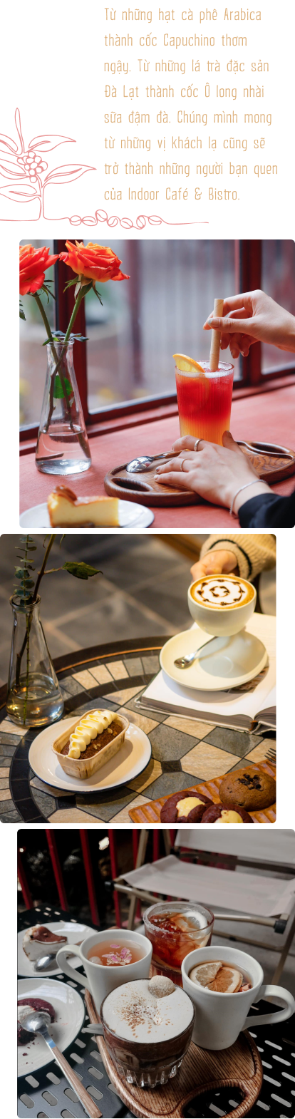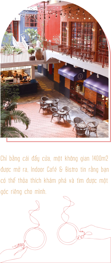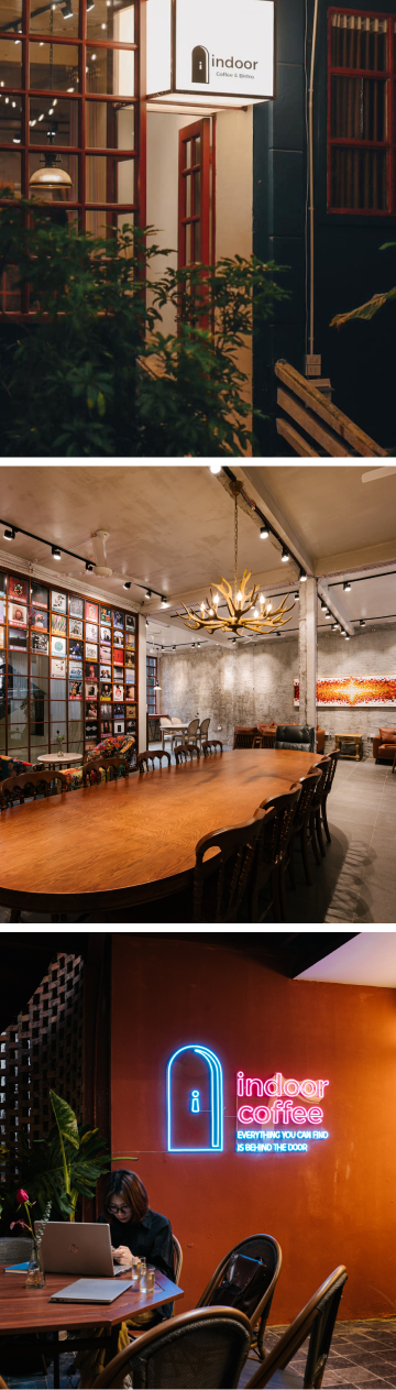 Chúng mình tự tin rằng mọi người sẽ không cảm thấy nhàm chán vì Indoor có rất nhiều không gian, mỗi góc lại mang đến những trải nghiệm và tiện ích khác nhau. Cần không gian yên tĩnh để làm việc? Đến Indoor. Cần không gian thoáng đãng, vui vẻ để tụ tập bạn bè? Đến Indoor. Cần quán cafe có góc riêng tư để hẹn hò? Cũng đến Indoor. Có lẽ vì thế mà chúng mình mới mở quán được 30 ngày thì đã có những khách quen đến đây 20 ngày.