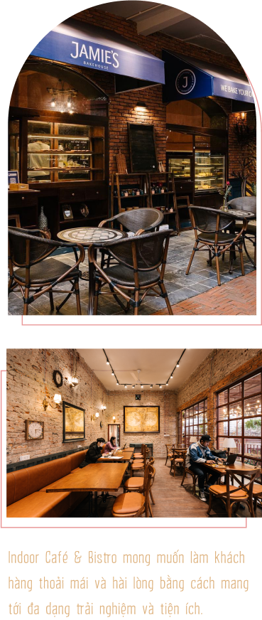 May mắn thay, mình gặp được anh Phong - một người đã có nhiều kinh nghiệm trong ngành F&B ngỏ lời cùng hợp tác. Anh Phong từng khá thành công với khu vườn 2000m2 Treeland coffee tại Nghĩa Tân, Cầu Giấy hay Moon coffee trên Tam Đảo. Và thế là anh em quyết định cùng nhau “chơi lớn” trong dự án mới. Jamie’s Bakehouse là một cái tên chuyên nghiệp hơn và nằm trong tổ hợp của Indoor Café & Bistro. Mình và anh Phong kết hợp với nhau với mong muốn mở rộng dịch vụ, nhằm đem đến những trải nghiệm đa dạng hơn khách hàng. Nhờ có anh Phong - một người anh có tâm, có tầm đang dẫn dắt đội ngũ Indoor nên mình cũng cảm thấy rất yên tâm.