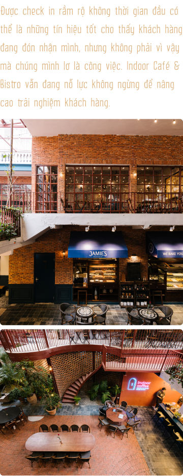 Bên cạnh đó, chúng mình cũng rất tập trung vào khía cạnh con người. Bước chân vào Indoor, mỗi vị khách đều sẽ được chào đón và phục vụ bằng những gương mặt tươi tắn, những giọng nói vui vẻ và nụ cười trên môi.