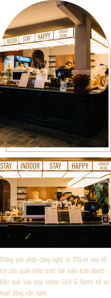 Bên cạnh đó, Indoor cũng đang dùng phần mềm quản lý kho iPOS Inventory để kiểm soát nguyên vật liệu chặt chẽ, hạn chế tình trạng thất thoát, lãng phí. À, mình đặc biệt ấn tượng với phần mềm quản lý nhân sự iPOS HRM nhé. Đúng là thời gian đầu các bạn nhân viên cũng chưa quen với việc chấm công trên điện thoại thay cho chấm vân tay, nên cũng mất thời gian training. Tuy nhiên hiện tại các bạn đều phản ánh rằng cách chấm công này rất tiện lợi. Quan trọng nhất là iPOS HRM có thể tự động tính lương vào cuối tháng. Chứ trước đây mình phải tự đếm công của nhân viên bằng tay vất vả bỏ xừ!