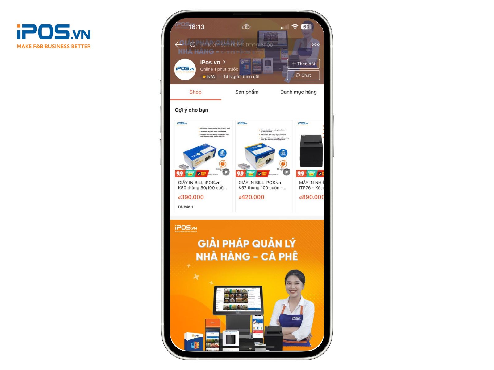 Hãy truy cập gian hàng của iPOS.vn trên Shopee ngay hôm nay để mua sắm các sản phẩm chính hãng và tận hưởng những ưu đãi đặc biệt. iPOS.vn luôn sẵn sàng đồng hành cùng các cửa hàng F&B trong mọi nhu cầu về thiết bị phần cứng!