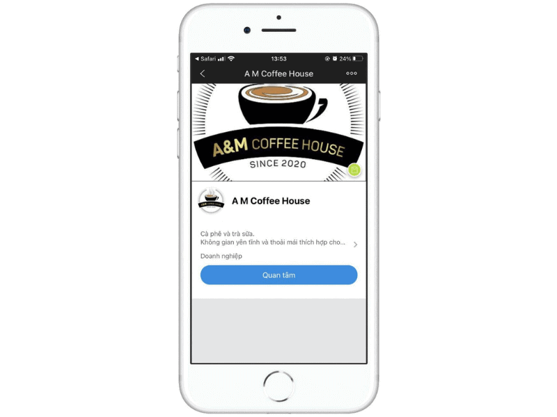 Khi nhấn vào Đăng ký thành viên, khách hàng sẽ được chuyển tới trang Cửa hàng trên Zalo/ Facebook (kênh nhà hàng đăng ký sử dụng iPOS CRM). Từ đây, khách hàng thao tác Quan tâm – Đăng ký thành viên – Tích điểm…