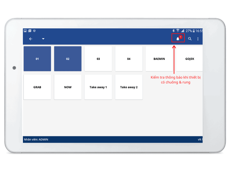 Bước 1. Nhận thông báo bằng tiếng chuông + rung trên Máy tính bảng