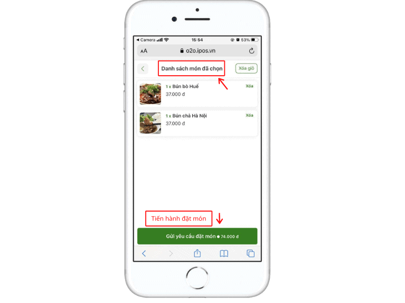 Bước 3: Kiểm tra giỏ hàng, đặt món