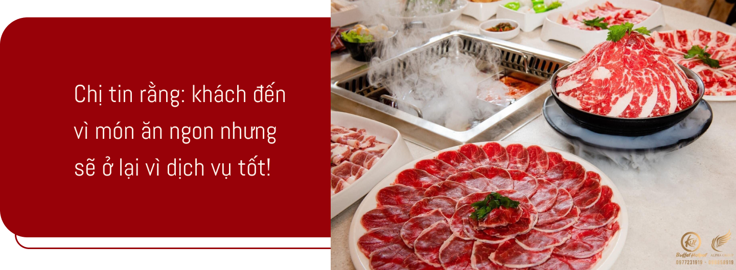 Món ăn ngon thì nhà hàng nào cũng có thể làm được. Thậm chí trong lĩnh vực buffet lẩu hiện nay chỉ cần một nhà hàng tạo ra một món ngon nào đó là một thời gian ngắn sau gần như các nhà hàng khác đều có. Nhưng chất lượng dịch vụ thì khác, chất lượng dịch vụ là “linh hồn” của mỗi nhà hàng, là chất riêng không phải ai cũng bắt chước được ai.”