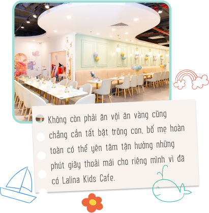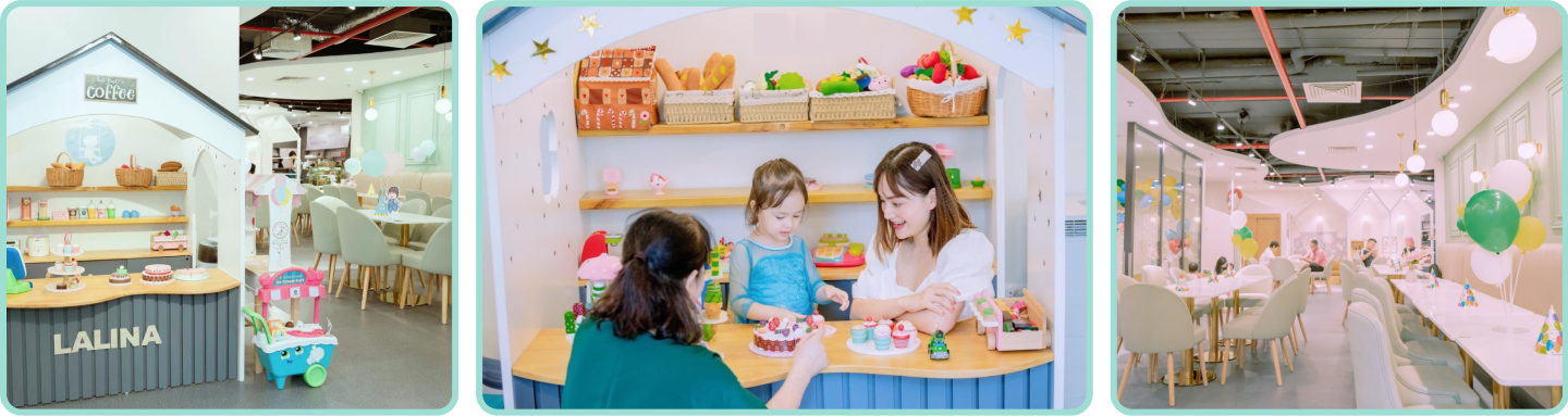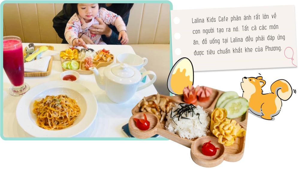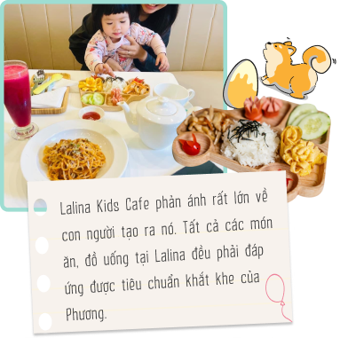 Xuất phát từ nhu cầu đó, Phương muốn tạo ra một điểm đến phù hợp để “cả nhà cùng vui”. Lalina Kids Cafe mang đến một không gian nhà hàng, cà phê để bố mẹ thư giãn, tận hưởng kết hợp với khu vui chơi an toàn, cao cấp cho các con. Khi ra mắt, Lalina là Premium Kids Cafe ĐẦU TIÊN VÀ DUY NHẤT tại Hà Nội vào thời điểm đó. Lựa chọn một mô hình mới mẻ đồng nghĩa với việc phải chấp nhận rủi ro để đạt được thành công. Và may mắn thay, Lalina Kids Cafe được mọi người đón nhận và ủng hộ rất nhiệt tình.