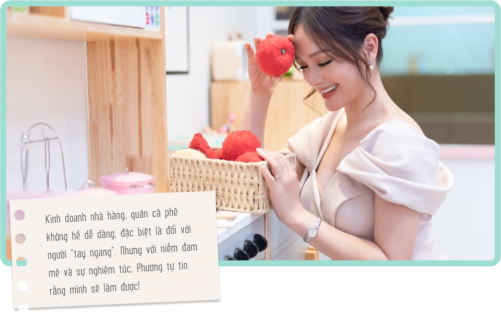 Sau một thời gian đọc sách và quan sát xung quanh, Phương nhận ra mình khá hứng thú với lĩnh vực kinh doanh. Đặc thù của công việc diễn xuất khiến Phương phải phụ thuộc nhiều vào tính cách của nhân vật, vào tình tiết của kịch bản. Nhưng kinh doanh lại là một thế giới khác - mới mẻ hơn, thú vị hơn, không những giúp kích thích tư duy, sáng tạo mà mình còn được chủ động kiểm soát mọi thứ theo ý muốn.