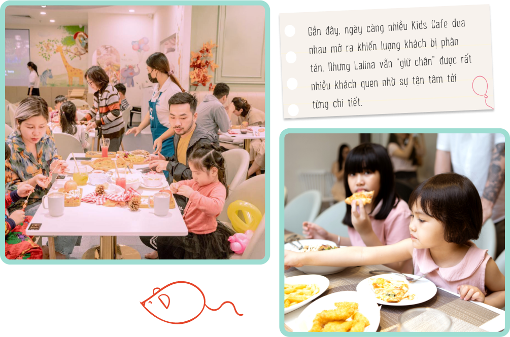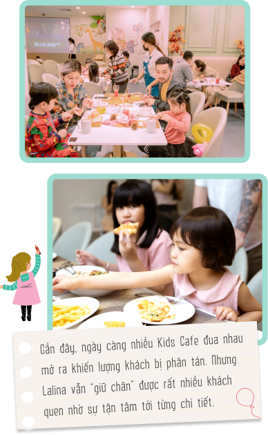 Nói đến đây, giọng chị Lan Phương bỗng dưng trầm xuống, có chút nghẹn ngào, xúc động. Với những tâm huyết và đam mê ấy của người làm chủ, tôi tin rằng Lalina Kids Cafe sẽ ngày càng thành công và phát triển trong tương lai!