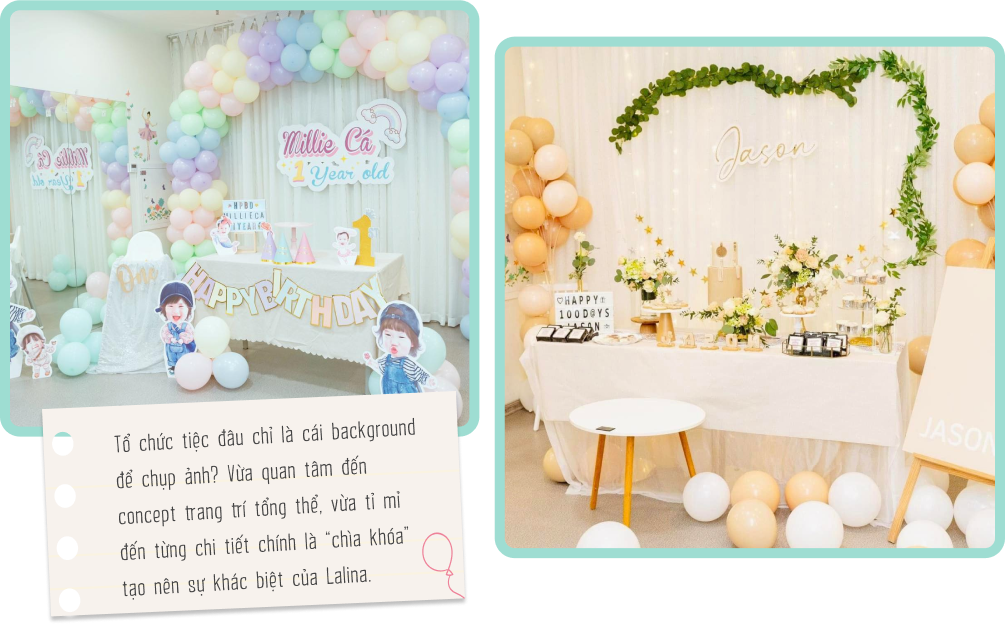Phương rất tự tin về dịch vụ tổ chức tiệc tại Lalina để tạo ra những trải nghiệm đáng nhớ cho cả bố mẹ và các con. Cả gia đình vui vẻ tận hưởng những buổi tiệc chỉn chu nhất từ trang trí không gian, đồ ăn thức uống mà không cần mất nhiều thời gian, công sức chuẩn bị. Bản thân Phương là người đã tới rất nhiều event sự kiện nên cũng có kinh nghiệm trong dịch vụ này.