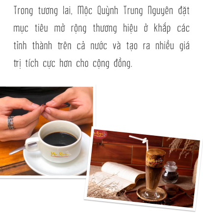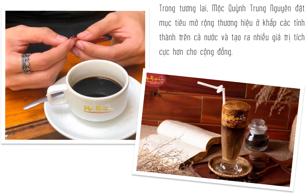 Ngoài ra, để mở rộng sức ảnh hưởng của Mộc Quỳnh trên thị trường, chị lựa chọn hình thức nhượng quyền thương hiệu, kết hợp với các đối tác tiềm năng ở nhiều tỉnh thành trên khắp cả nước. Việc nhượng quyền không chỉ có lợi cho Mộc Quỳnh mà cũng là một cách để chị giúp đỡ những người yêu thích cà phê, muốn kinh doanh nhưng còn bỡ ngỡ với thị trường F&B. Trước đây khi mới khởi nghiệp chị cũng đã được giúp đỡ như vậy, nên sau khi thành công chị luôn nghĩ bản thân phải có trách nhiệm quay lại truyền lửa đam mê cho những người đi sau.
