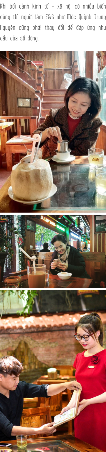 Đại dịch COVID-19 vừa qua cũng là một phép thử “sức đề kháng” đối với những doanh nghiệp như Mộc Quỳnh Trung Nguyên. Sau đại dịch, hành vi tiêu dùng của khách hàng bắt đầu dịch chuyển, thói quen ăn uống chuyển từ ngồi tại chỗ sang mua hàng trực tuyến. Vậy nên chị nhận thấy thương hiệu cần phải cấp thiết thay đổi, có những điều chỉnh để hoạt động suôn sẻ hơn. Hơn nữa, khi các đối thủ trên thị trường đang dần hiện đại hóa thì chính bản thân Mộc Quỳnh Trung Nguyên cũng phải hiện đại hóa theo để không bị lỗi thời.
