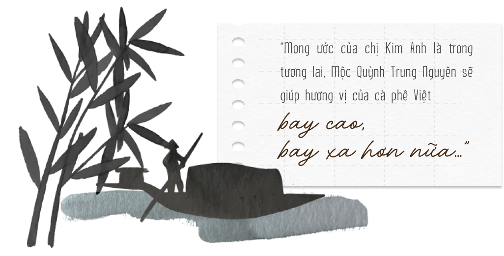 Đúng như cái tên “Mộc Quỳnh Trung Nguyên”, chị sử dụng “mộc” - gỗ - làm yếu tố chủ đạo trong kiến trúc của thương hiệu bởi nó gắn liền với văn hóa Việt. Ở vùng nông thôn Bắc Bộ, gỗ luôn xuất hiện trong đời sống nhân dân, là vật liệu để xây dựng nên nhà ở, bến nước, đình làng,... Gỗ rắn rỏi, vững chắc, kiên cường nhưng cũng rất giản dị, thân thuộc, mộc mạc - đều là những nét tính cách đặc trưng của con người Việt Nam.