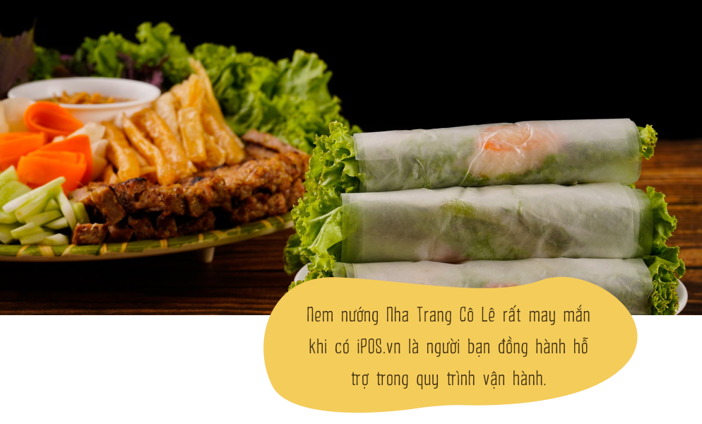 Ngoài ra, ngay từ những ngày đầu mới mở cửa hàng, chị cũng ứng dụng các giải pháp công nghệ để quy trình vận hành được trơn tru, tiết kiệm được thời gian và nhân lực hơn rất nhiều. Nem nướng Nha Trang Cô Lê rất may mắn khi có iPOS.vn là người bạn đồng hành hỗ trợ trong quy trình vận hành. Thời gian đầu mới làm quen thì có hơi bỡ ngỡ, qua một thời gian thì đã sử dụng mượt mà hơn. Nhờ có phần mềm quản lý bán hàng FABi, nhân viên có thể tiến hành order và thanh toán cho khách hàng nhanh chóng. Chị có thể nắm được tình hình doanh thu (tăng hay giảm) khi ở xa, từ đó đo lường và điều chỉnh kế hoạch kinh doanh cho tháng tiếp theo. Phần mềm quản lý từ xa FABi Manager gửi báo cáo rất chi tiết và rõ ràng về tình hình chung của các cơ sở, kiểm soát được sự gian lận của nhân viên (sửa - xóa hóa đơn, thu - chi trong ca…) đều thông báo về máy của quản lý, giúp chị quản lý thuận tiện hơn, hỗ trợ cho việc ra quyết định về các kế hoạch marketing, nhân sự của cửa hàng và quản lý được lỗ hổng khi gặp vấn đề thất thoát hàng hóa.