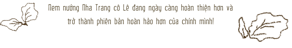Nem nướng Nha Trang cô Lê luôn luôn ghi nhận kịp thời các phản hồi của khách về món ăn, nâng cao chất lượng sản phẩm và phục vụ chuyên nghiệp mỗi ngày. Bên cạnh đó, thương hiệu vẫn sẽ tiếp tục sử dụng các giải pháp công nghệ để tối ưu quy trình vận hành của toàn chuỗi, mang đến những giá trị thực có lợi cho khách hàng chứ không chỉ tập trung vào lợi nhuận đơn thuần. Chị hi vọng mỗi khách đến với nem nướng Nha Trang cô Lê đều cảm thấy thỏa mãn và hài lòng với từng suất nem thơm ngon được tạo ra bằng cả tâm huyết của thương hiệu. Nem nướng Nha Trang cô Lê đang ngày càng hoàn thiện và trở thành phiên bản hoàn hảo hơn của chính mình!