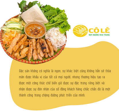 Các tín đồ ẩm thực ắt hẳn không còn lạ lẫm gì với thương hiệu nem nướng Nha Trang nổi tiếng: Nem nướng nha Trang cô Lê - một trong những thương hiệu dẫn đầu cho cơn sốt nem nướng đặc sản Nha Trang. Phủ sóng hàng loạt đến 7 cơ sở và tọa lạc tại các vị trí đắc địa nhất thủ đô Hà Nội phồn hoa, Nem nướng Nha Trang cô Lê đã thành công chinh phục khẩu vị của những thực khách khó tính nhất và đặc biệt “gây nghiện” đối với những người đam mê ẩm thực ba miền. Gìn giữ cái hồn của đặc sản Nha Trang, biến tấu công thức nước sốt và nem để tạo nên sự “độc quyền” khác biệt chiều chuộng khẩu vị của khách hàng không phải là dễ. Thế nhưng, Nem nướng nha Trang cô Lê đã và đang làm rất tốt điều đó. Và tất nhiên, đó là cuộc chiến đường dài mà mỗi thương hiệu đều phải chinh chiến qua.