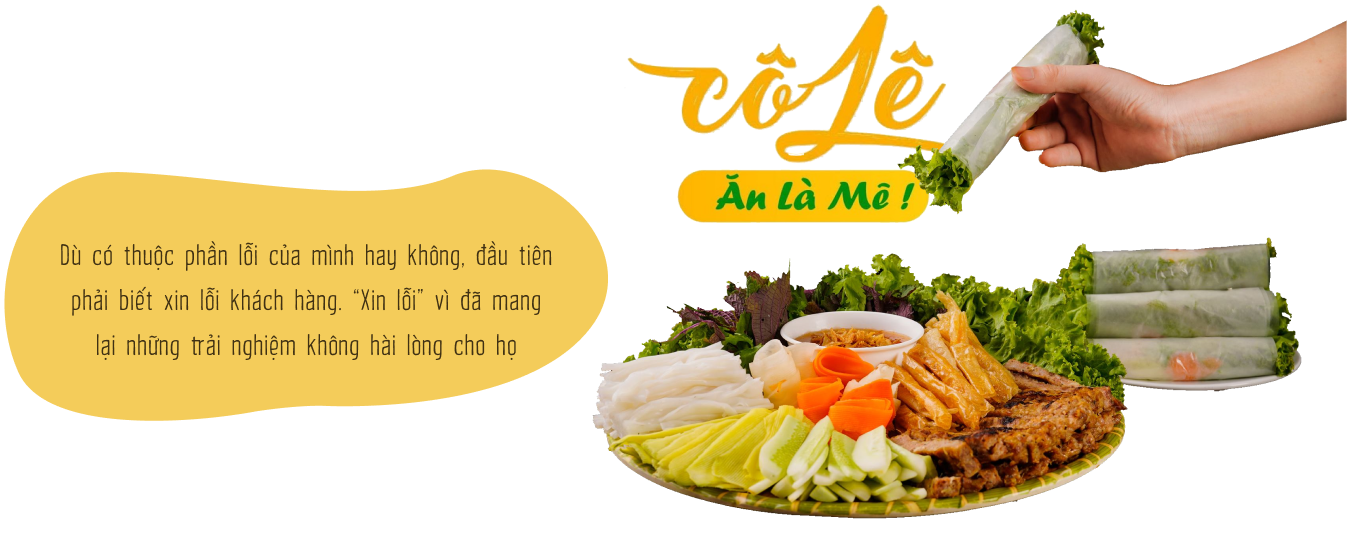 “Xin lỗi” là câu nói đầu tiên mọi nhân viên của Nem nướng cô Lê phải học và áp dụng ngay khi thấy khách hàng đang gặp vấn đề với suất ăn của mình tại quán. Chị ưu tiên giải quyết mọi vấn đề từ nhỏ đến lớn để khách luôn cảm thấy được thoải mái khi trải nghiệm dịch vụ, tương lai biết đâu họ sẽ trở thành khách hàng thân thiết của thương hiệu. Ngay từ những ngày đầu thành lập, phương châm kinh doanh của chị luôn là: “Dù có thuộc phần lỗi của mình hay không, đầu tiên phải biết xin lỗi khách hàng. “Xin lỗi” vì đã mang lại những trải nghiệm không hài lòng cho họ.” Tùy vào từng trường hợp để chị xử lý, đền bù để xoa dịu và làm thỏa mãn khách hàng. Mỗi cơ sở đều được thiết lập bộ quy chuẩn chung, điển hình như: nhân viên gọn gàng, không gian sạch sẽ, đồ ăn ngon miệng, thực khách không phản ánh tiêu cực,... Luôn đặt khách hàng lên hàng đầu, tập trung vào trải nghiệm của khách hàng là nhiệm vụ thiết yếu của chuỗi cơ sở Nem nướng Nha Trang cô Lê hiện nay.