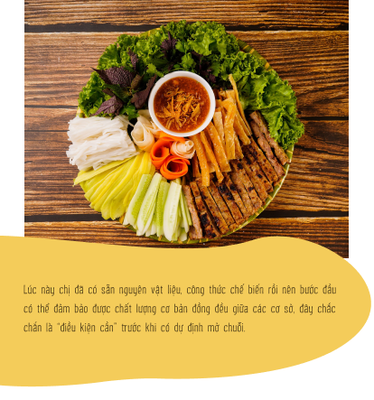 Để cải thiện nhược điểm về nước sốt hay nem để phù hợp với khẩu vị của phần đông khách hàng, chị đã sử dụng phiếu khảo sát ý kiến như một công cụ ghi nhận feedback, kiên trì chờ khách hàng hoàn thành bữa ăn và xin ý kiến của họ về hương vị sau khi trải nghiệm. Lúc đó chị rất kiên trì, cứ bàn nào gọi đồ thì chị bê ra và ngồi tại quầy chờ họ ăn xong rồi trực tiếp ra bàn khảo sát ý kiến của khách. Sau đó chị sẽ tổng hợp thông tin và có những thay đổi sao cho phù hợp với khẩu vị của tệp khách hàng đến ăn tại quán.