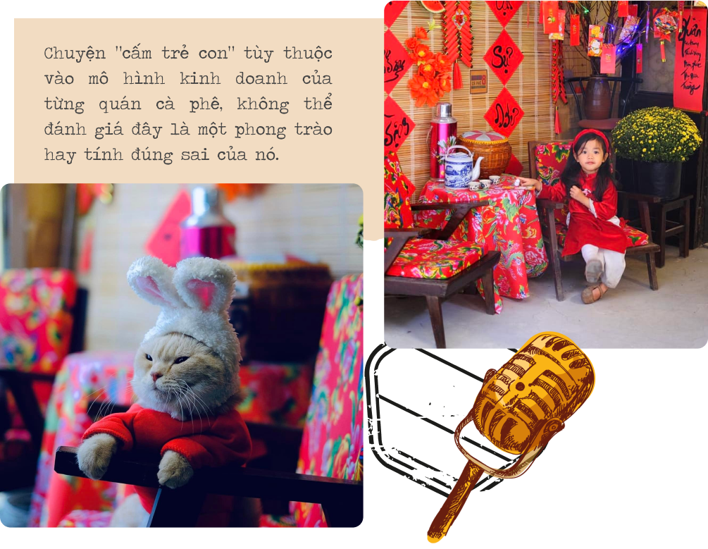 Cá nhân chị thấy chúng ta không thể đánh giá phiến diện việc “cấm trẻ con” là cách làm đúng hay sai, mà phải đặt vào tình huống và mô hình kinh doanh của từng quán cà phê để xem xét. Có những quán cà phê sách, cà phê dành cho khách tới làm việc rất cần sự yên tĩnh để mọi người tập trung, vậy nên phụ huynh dẫn con nhỏ hay nô đùa, la hét tới những quán như vậy thì không phù hợp. Ngược lại, những quán cà phê giải trí, cà phê games hay cà phê kết hợp khu vui chơi,... là nơi mà người lớn có thể thoải mái đưa con cái theo cùng.