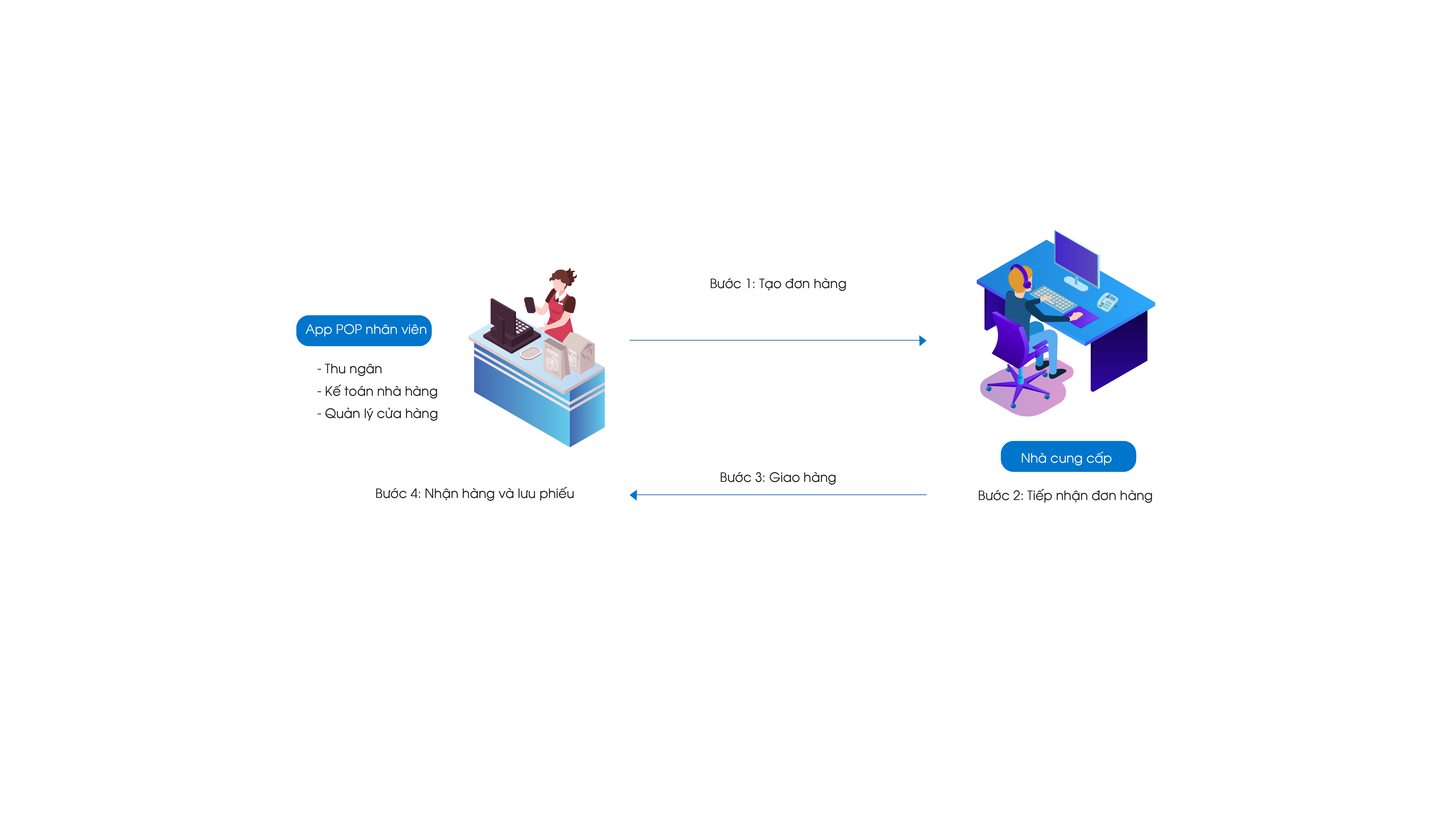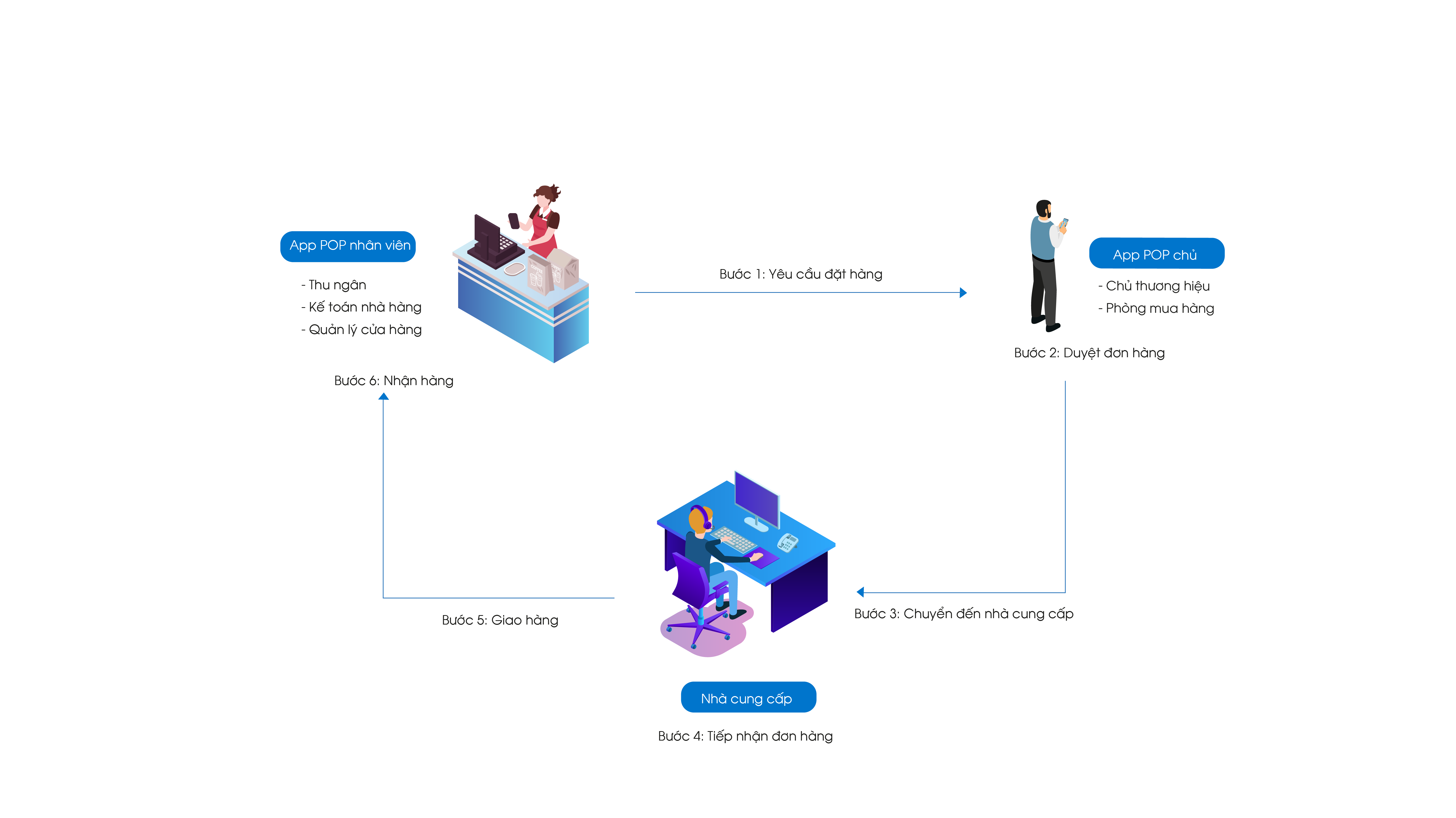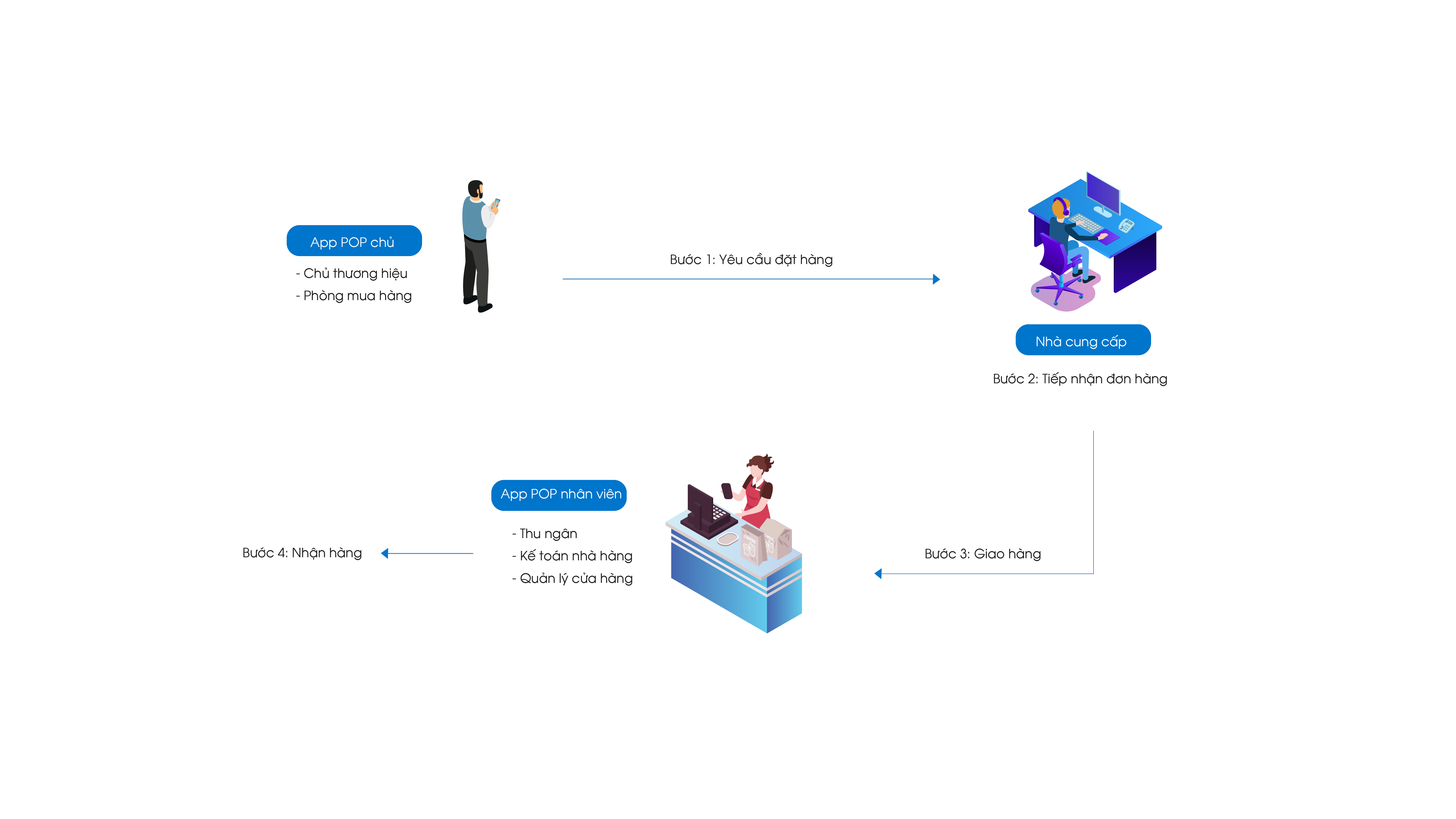 - Nhận và phê duyệt yêu cầu mua hàng từ phía cửa hàng trên một ứng dụng duy nhất