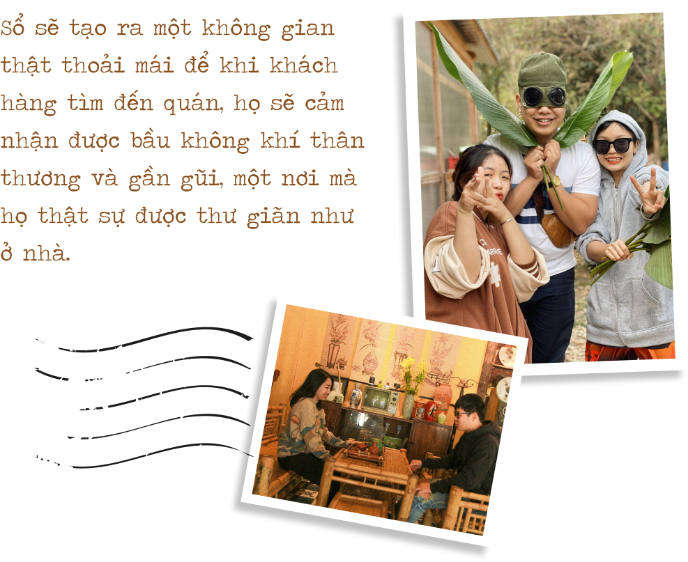 Chắc hẳn điều khiến khách hàng yêu thích và dành nhiều tình cảm cho Sổ nhất nằm ở yếu tố con người, đó là lý do mà anh tạo ra một môi trường làm việc gần gũi và thân thiết cho các bạn nhân viên. Mỗi bạn nhân viên tại Sổ sẽ đóng vai trò là một người chủ nhà, cùng nhau chào đón những vị khách đến với Sổ bằng cả tấm lòng và trái tim của mình. Không chỉ là một người chủ nhà mến khách mà còn thể hiện sự gần gũi, thân thiện, mộc mạc và nhiệt tình. Sổ sẽ tạo ra một không gian thật thoải mái để khi khách hàng tìm đến quán, họ sẽ cảm nhận được bầu không khí thân thương và gần gũi, một nơi mà họ thật sự được thư giãn như ở nhà.