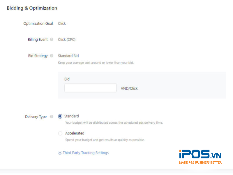 - Delivery Type: Nếu muốn TikTok “cắn” tiền và phân phối mẫu quảng cáo nhanh hơn thì tích chọn “Accelerated”, hoặc không thì chỉ cần lựa chọn “Standard”.