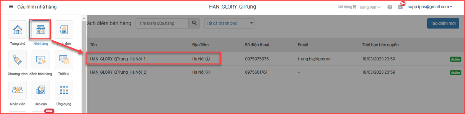 - Bước 1: Chọn điểm bán hàng cần cấu hình