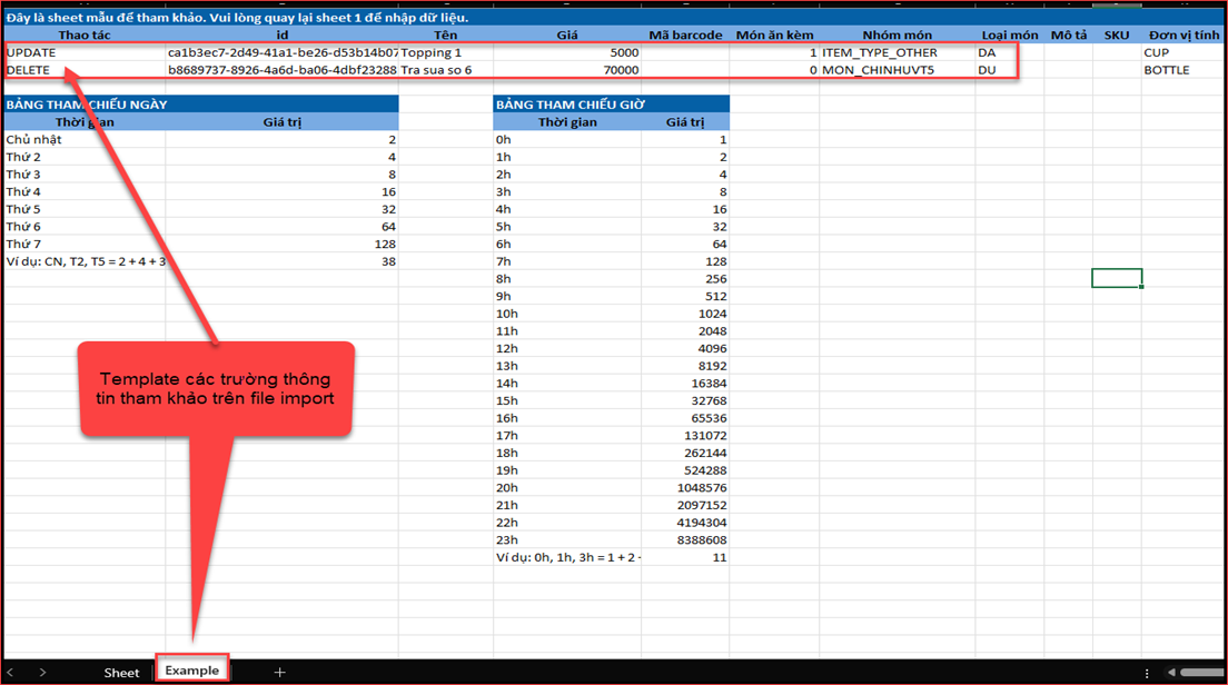 Khai báo đầy đủ thông tin vào file import, tham khảo mẫu Example