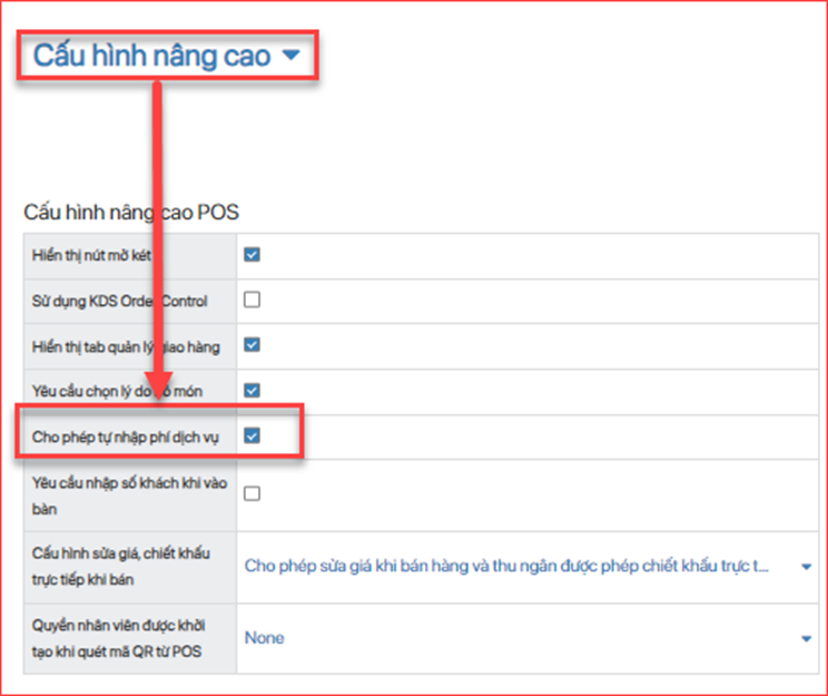 - Bước 2: Tích chọn tính năng “Cho phép tự nhập phí dịch vụ”