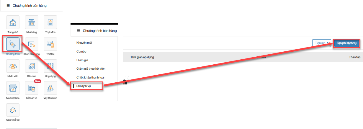 - Bước 1: Tạo chương trình setup phí dịch vụ