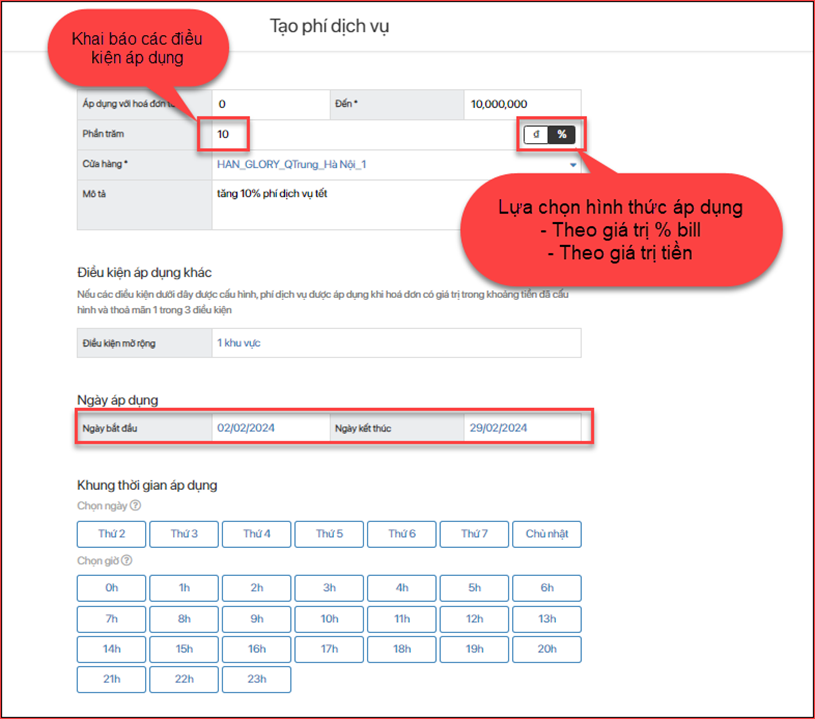 1. Khai báo Phí dịch vụ áp dụng