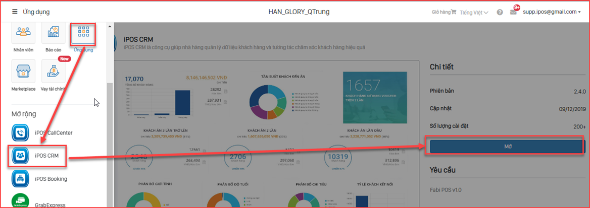 Cài đặt trên giao diện CRM
